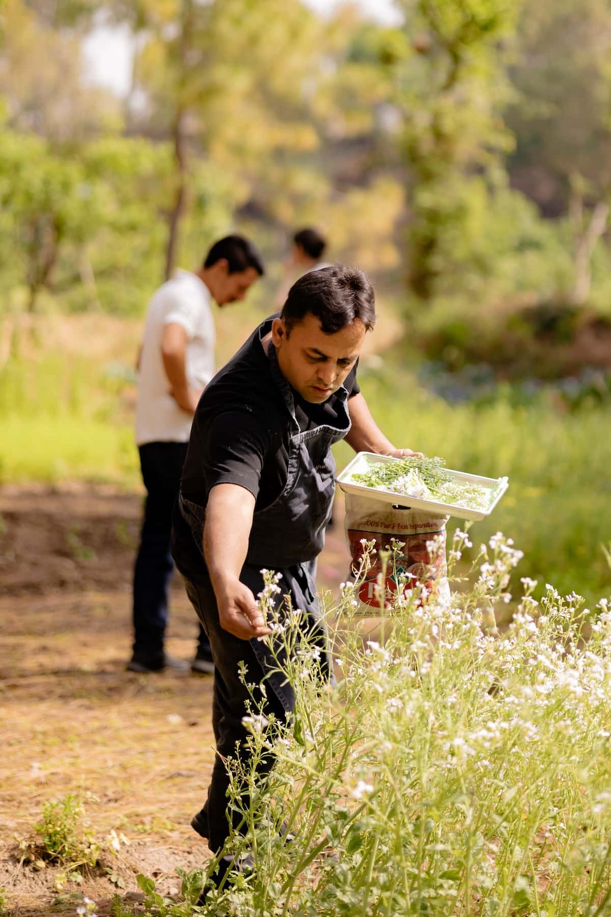 Then he spent two years traveling every province in the country, looking for what had been forgotten. He found it, eventually, right back where he’d started, in the mountains he grew up beneath. NAAR – the word means fire in Kashmiri – opened inside Amaya, a sustainable boutique resort constructed from local stone and wood in Himachal Pradesh. The dining room holds sixteen guests. The menu runs between fourteen and fifteen courses and changes entirely with each Himalayan season.