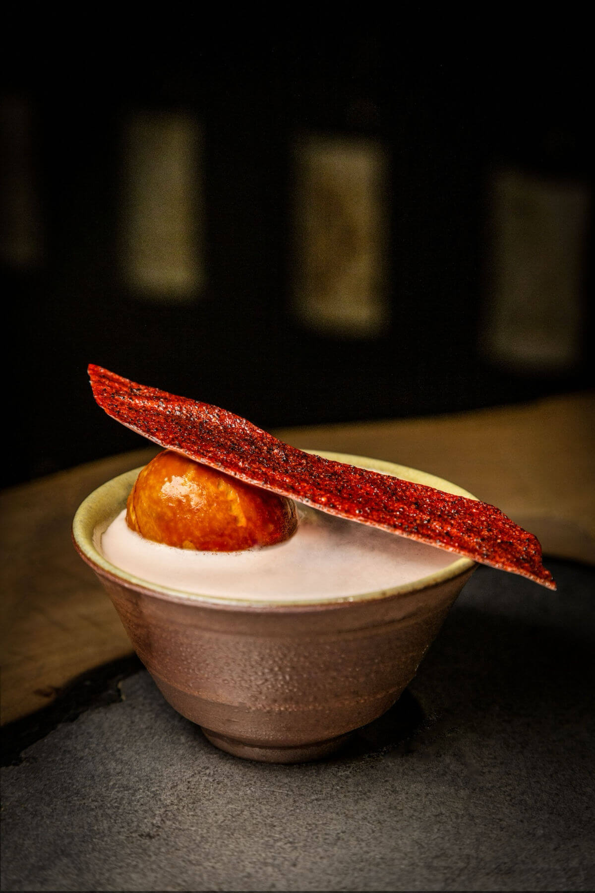 Guests don’t have to follow the set-menu format. “They can go straight to mains if they want something especially interesting,” Taln continues. Some guests discover their preference mid-journey: “Some visitors have a starter, then a savory main and realize that’s what they like the most and order another main.”