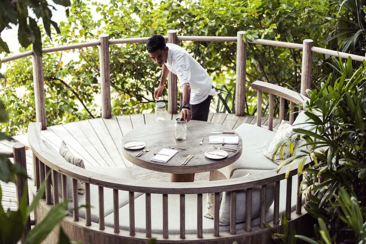 The fresh ingredients are prepared simply – barbecued seafood, local dishes, tropical fruit. The set menu approach means almost zero food waste – what little there is gets transformed into compost by black soldier fly larvae, who then sacrifice themselves as chicken feed. It’s a closed-loop system that works. And you can take picnic hampers to nearby deserted islands if you want total seclusion, or eat in tree-shaded pods if you don’t.