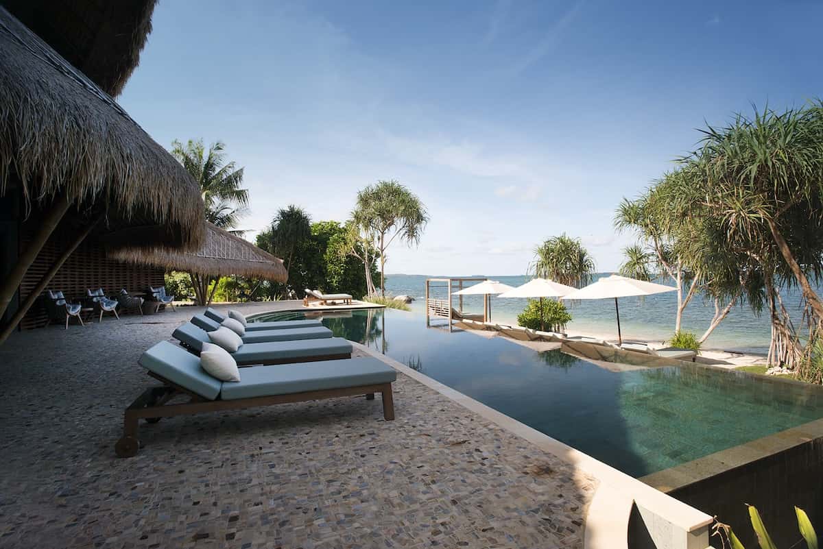 There’s more at the restaurant entrance. More at the pool bar. It’s the kind of gesture the place invokes – a voluntary reverence for something carefully made. Because a three-hour escape from Singapore, off Bintan’s coast, this 20-villa resort wasn’t built so much as crafted by Balinese artisans who spent two years shaping this island around what was already there.